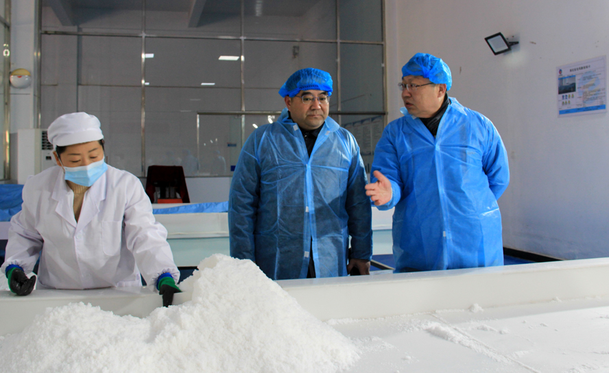 楊龍察看了金橋制鹽公司雪花鹽車間、加工鹽車間、包裝鹽車間生產(chǎn)現(xiàn)場(chǎng),詳細(xì)了解企業(yè)近期的產(chǎn)品生產(chǎn)銷售情況,要求該公司要繼續(xù)抓好疫情防控、產(chǎn)品市場(chǎng)開拓和冬季安全生產(chǎn)工作。