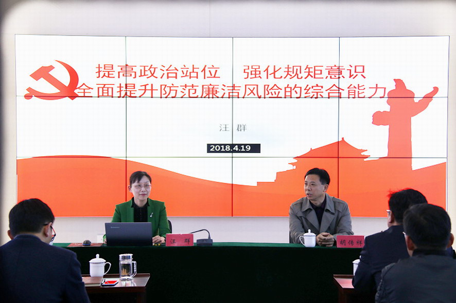 為進(jìn)一步深入學(xué)習(xí)貫徹黨的十九大會(huì)議精神,強(qiáng)化正風(fēng)肅紀(jì),不斷鞏固拓展落實(shí)中央八項(xiàng)規(guī)定精神成果,4月19日下午,集團(tuán)公司紀(jì)委書記汪群在資產(chǎn)管理公司上了一堂《提高政治站位,強(qiáng)化規(guī)矩意識,全面提升防范廉潔風(fēng)險(xiǎn)的綜合能力》廉政黨課,該公司50多名干部職工聆聽了黨課。
