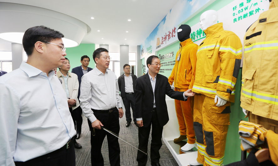 曹衛(wèi)東一行先后參觀了奧神新材料公司展廳和聚酰亞胺高性能纖維生產(chǎn)車間,并聽取了相關(guān)情況匯報,對奧神新材料公司的研發(fā)能力和高性能纖維產(chǎn)業(yè)發(fā)展成效給予了充分肯定。曹衛(wèi)東指出,奧神新材料公司成立五年來,以創(chuàng)新驅(qū)動轉(zhuǎn)型為動力,致力推進企業(yè)技術(shù)創(chuàng)新、產(chǎn)品創(chuàng)新和市場創(chuàng)新,取得了令人矚目的成績?!笆濉逼陂g,作為高性能纖維自主研發(fā)制造企業(yè)、聚酰亞胺纖維干法紡絲生產(chǎn)核心技術(shù)的掌握者,奧神新材料公司要進一步突出高、新、優(yōu)特色,切實踐行創(chuàng)新發(fā)展理念,加強自主知識產(chǎn)權(quán)保護,在聚酰亞胺纖維研發(fā)及生產(chǎn)方面著力突破新技術(shù)、提升創(chuàng)新力,推動產(chǎn)業(yè)高端化、規(guī)?;⒓刍l(fā)展,打造國內(nèi)一流的新材料產(chǎn)業(yè)基地,為推動連云港市纖維新材料產(chǎn)業(yè)發(fā)展做出新的貢獻。