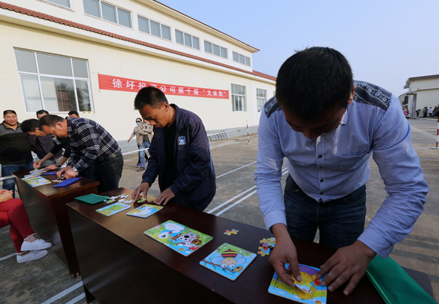 本屆“文體周”圍繞“活力健身·逐夢徐圩”活動主題,組織19支代表隊(duì)近1000人次參賽隊(duì)員在拔河、籃球、臺球、摜蛋、卡拉OK及實(shí)心球投準(zhǔn)等11個項(xiàng)目比賽中,進(jìn)行為期一周時間的奮力角逐。在開幕式當(dāng)天的男女混合拔河、智力拼圖接力和穿越呼啦圈三個項(xiàng)目比賽中,悅升一隊(duì)、機(jī)關(guān)、悅升二隊(duì)別獲得拔河、智力拼圖和穿越呼啦圈項(xiàng)目比賽的第一名。