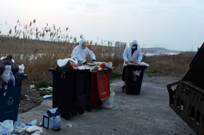 疫情防控期間,保潔分公司要保障徐新路、海濱大道等主干道路及幸福家園及張圩小區(qū)周邊道路等范圍(600多萬(wàn)平方米)垃圾日常清運(yùn)的同時(shí),要將徐圩新區(qū)人民醫(yī)院核酸檢測(cè)點(diǎn)垃圾清運(yùn)到位。他們?cè)诠伯a(chǎn)黨員耿恒發(fā)的帶領(lǐng)下,做好疫情防控措施,早5晚8開展工作。進(jìn)入三月,天氣逐漸轉(zhuǎn)暖,防護(hù)服“籠罩”已不是那么舒服,在陽(yáng)光照射下,汗水很快便浸濕了衣襟,但他們無(wú)怨無(wú)悔。面對(duì)大量檢測(cè)廢物和口罩,帶著未知的病毒風(fēng)險(xiǎn),日清運(yùn)垃圾30多噸,清理消毒各類垃圾桶600余個(gè)。