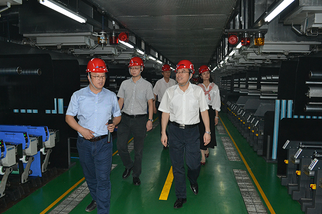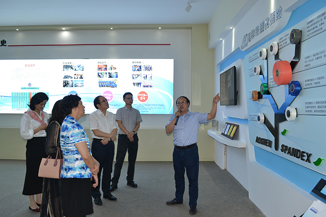 姚正軍主任一行先后參觀了公司展廳、黨員活動室、抖音直播間、八期生產(chǎn)線、自動化包裝線、研發(fā)中心等。公司總經(jīng)理張斌對我公司的發(fā)展歷程,差別化產(chǎn)品、戰(zhàn)略優(yōu)勢、積極開拓營銷渠道,創(chuàng)新運用新媒體傳播方式推進(jìn)商品銷售等進(jìn)行了詳細(xì)介紹。姚正軍主任對我公司低溫?zé)嵴澈习本]、抗菌氨綸、驅(qū)蚊氨綸及氨綸生產(chǎn)全流程自動化、智能化生產(chǎn)線等給予了高度評價。希望公司進(jìn)一步深入實施差別化氨綸及后道特色產(chǎn)品發(fā)展戰(zhàn)略的重大舉措,再創(chuàng)針織行業(yè)輝煌!