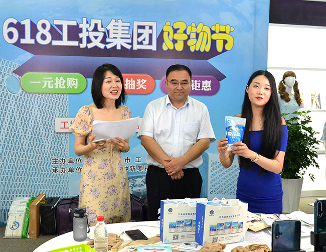 “618工投集團好物節(jié)”活動在楊董事長熱情洋溢的致辭中拉開帷幕?;顒蝇F(xiàn)場,來自氨綸公司的多款抗菌系列服飾、驅(qū)蚊系列服飾、隨心裁系列服飾,青口投資公司的“鹽田玉”大米、金橋制鹽的雪花鹽,神特新材的高性能纖維涼席、枕套,奧神新材的甲綸PI超絕熱功能被等紛紛精彩亮相,活動中的抽獎環(huán)節(jié)將直播現(xiàn)場的氣氛不斷推向高潮。廣大觀眾與主播熱情互動,成交踴躍。