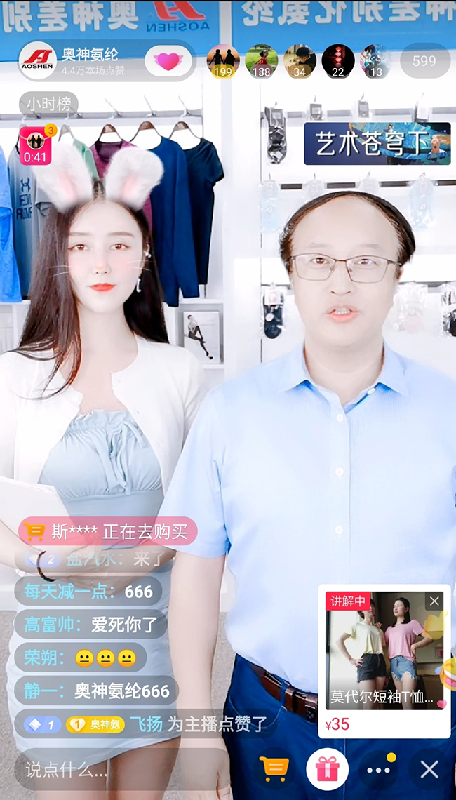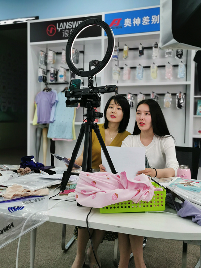 活動中,公司總經(jīng)理張斌為直播活動開幕致辭。張斌總經(jīng)理表示,連云港杜鐘新奧神氨綸有限公司作為國有企業(yè),將積極借助網(wǎng)絡(luò)直播平臺,探索電商線上發(fā)展新模式,把奧神氨綸的商品更好地推向市場?;顒又?,我們邀請知名主播為線上的觀眾們帶來了具有專利抗菌作用的內(nèi)褲、連褲襪、家居服、莫代爾T恤等產(chǎn)品。通過開啟“云逛街”模式,帶領(lǐng)大家在抖音淘寶平臺感受奧神氨綸的產(chǎn)品和企業(yè)文化。