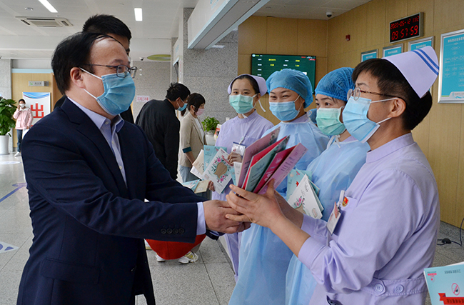張斌總經(jīng)理表示,在全民共抗疫情的關(guān)鍵時(shí)期,廣大醫(yī)護(hù)工作者挺身而出,向險(xiǎn)逆行,日夜奮戰(zhàn),向全世界展示了新時(shí)代中國(guó)醫(yī)護(hù)工作者的勇氣、智慧與擔(dān)當(dāng)。我們希望能通過(guò)捐贈(zèng)活動(dòng)為連云港市第一人民醫(yī)院疫情防控工作貢獻(xiàn)一份力量,擔(dān)負(fù)起應(yīng)有的社會(huì)責(zé)任。