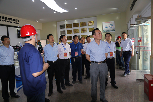 2017年5月25日,由市人大常委會領(lǐng)導(dǎo)陳敏帶隊,省市縣三級人大代表組成的視察組一行25人,在工投集團(tuán)董事長楊龍、總經(jīng)濟(jì)師陳如軍等陪同下赴我公司參觀考察,代表團(tuán)先后參觀我了公司展廳、工程建設(shè)現(xiàn)場及7期項目生產(chǎn)線,氨綸公司總經(jīng)理張斌進(jìn)行了情況介紹。