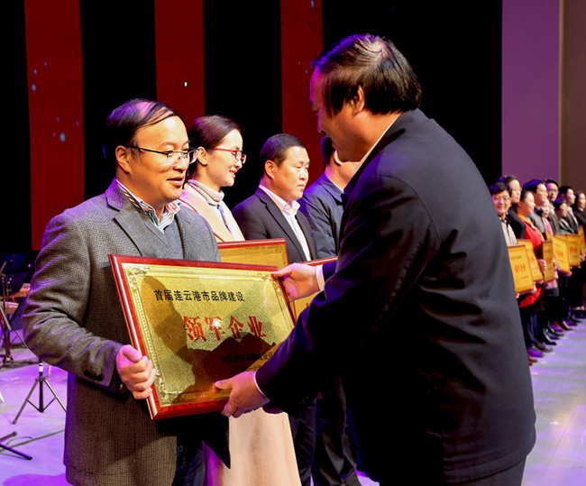晚上,首屆連云港市品牌建領(lǐng)軍企業(yè)、連云港市品牌建設(shè)知名企業(yè)、連云港市自主品牌建設(shè)領(lǐng)軍人物、連云港市自主品牌建設(shè)創(chuàng)新人物頒獎(jiǎng)典禮在連云港市文化藝術(shù)中心舉行,副市長(zhǎng)徐家保親臨現(xiàn)場(chǎng)并為獲獎(jiǎng)單位頒獎(jiǎng)。