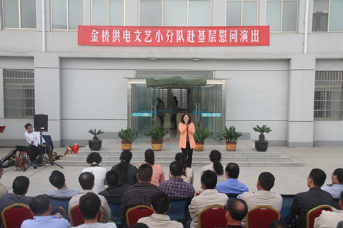近日,為慶祝建國65周年,進一步踐行黨的群眾路線,豐富基層職工文化生活,公司工會組織文藝小分隊深入供電所等基層單位巡回慰問演出,為一線職工送去精彩紛呈的“文化大餐”,贏得了基層職工群眾一致好評。 在臨時搭建的舞臺上,文藝小分隊自編自演的的歌舞、相聲、詩朗誦、器樂彈唱等豐富多彩的節(jié)目,貼近基層,貼近生活,謳歌金橋供電十年成就,展示金橋供電職工風采,贏得了現(xiàn)場觀眾陣陣掌聲。中間還穿插了擊鼓傳花觀眾互動節(jié)目,基層職工踴躍參與,氣氛活躍。最后,演出在會場全體人員齊唱《歌唱祖國》中圓滿落下帷幕。 公司自成立以來,一直注重企業(yè)文化建設(shè),利用多種形式活躍基層文化生活,滿足員工多層次、多角度的精神需求。不僅加強基層單位“職工小家”建設(shè),建立了“職工書屋”、職工活動室、乒乓球室、羽毛球活動場地等基礎(chǔ)設(shè)施,還舉辦了職工運動會、籃球賽和文藝演出等活動。不僅發(fā)揮傳統(tǒng)職工文化活動的優(yōu)勢,而且還創(chuàng)新具有時代特色文化活動的形式,不斷增強員工的凝聚力和向心力。通過本次深入基層慰問演出,不僅為戰(zhàn)斗在一線的基層職工獻上一份精神“大餐”,同時也展示了金橋供電的良好作風和企業(yè)形象。(趙艷)