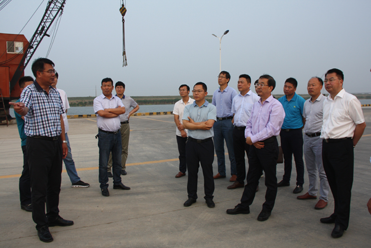 在宵洋物流公司的五灌河碼頭處,集團公司總經(jīng)理胡建明對五灌河碼頭的建設和運營情況對考察團進行了介紹,他指出,五灌河碼頭是公司利用擁有的內(nèi)河岸線資源開發(fā)起來,主要進行原鹽駁運和建材、化工噸袋等物資的裝卸,碼頭吞吐量年年增長,目前年吞吐量已達到100萬余噸,二期碼頭擴建項目即將進行,集團公司除了五灌河碼頭,還有一處燒香河內(nèi)河碼頭,也許暫時看不到顯著效益,但隨著江蘇沿海經(jīng)濟開發(fā)的不斷推進,碼頭的資源優(yōu)勢愈加凸顯,將來一定會成為稀缺資源。