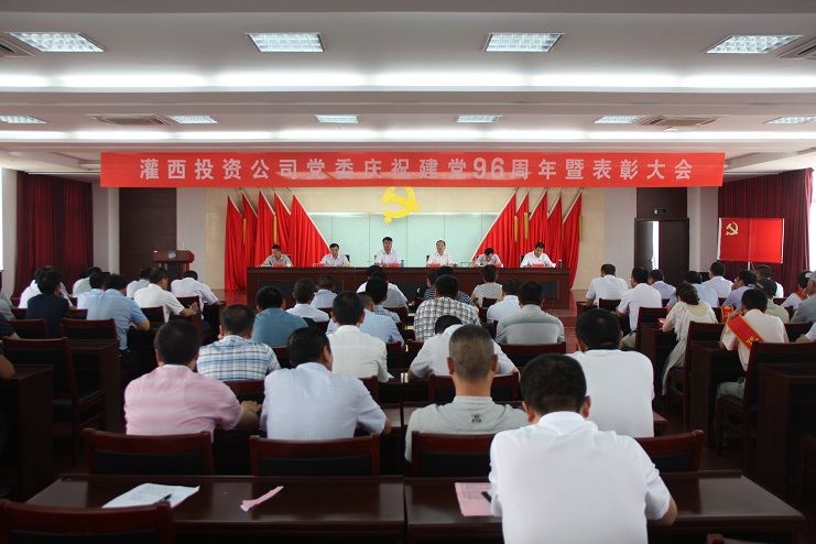6月30日,灌西投資公司黨委隆重召開慶祝建黨96周年暨表彰大會,公司黨委領導班子全體成員、各單位副職級以上黨員、機關全體黨員以及受表彰的優(yōu)秀共產黨員、優(yōu)秀黨務工作者黨員參加大會。