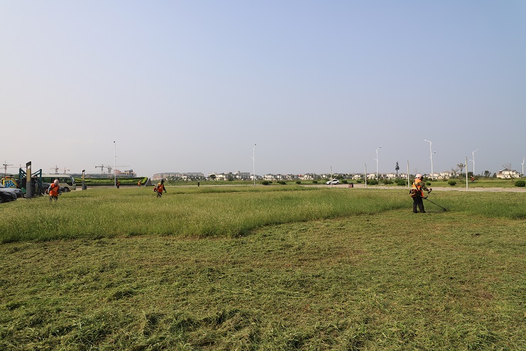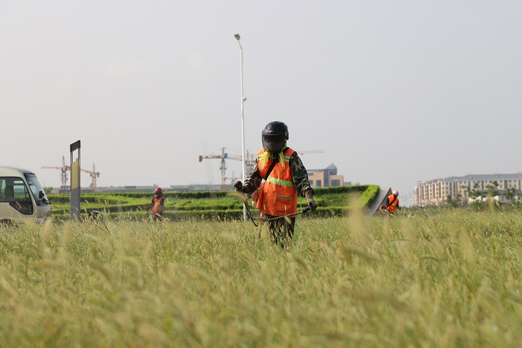 連日來,在臨港產業(yè)區(qū)辦公樓前,我們看到幾名南翼綠化公司的工人正在草坪上揮動割草機,忙碌的進行著除草作業(yè)。據了解,為了避開高溫時段,他們早上6點就開始工作,許多綠化工人都是五點多在家匆忙吃完早飯就趕往工作現場,有的甚至空腹上陣。工作現場,在經過一個夏天的生長,不少地方的雜草都近半米高,草叢內還有不少的碎石子等雜物,為了做好自身防護,工人們穿著厚厚的衣褲,戴著口罩、頭盔,肩扛除草機,一工作就是一上午。雖然近階段氣溫逐漸下降,但近30°的氣溫還是讓工人們吃不消。為了盡快完成工作目標,每一名工人都在咬牙堅持,默默地為更多的人營造一個優(yōu)美、整潔的環(huán)境而做出自己的貢獻。(封楊)
