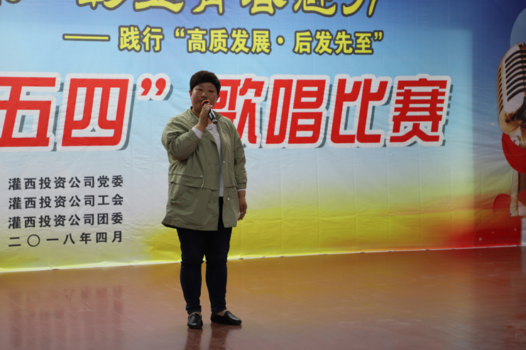 人間芳菲四月天,灌西豪情歌聲揚。4月27日下午,灌西綜合服務(wù)大樓五樓洋溢著灌西人的歡聲笑語,灌西投資公司“謳歌勞動風采 彰顯青春魅力” 踐行“高質(zhì)發(fā)展˙后發(fā)先至”“慶五一˙迎五四”歌唱比賽在這里舉辦,用歌聲唱響“拼搏二季度,實現(xiàn)雙過半”的主旋律,展示新時代·新征程·新灌西·新風采!灌西投資公司領(lǐng)導(dǎo)以及來自公司各條戰(zhàn)線的廣大職工和群眾近二百人一同觀看了比賽。