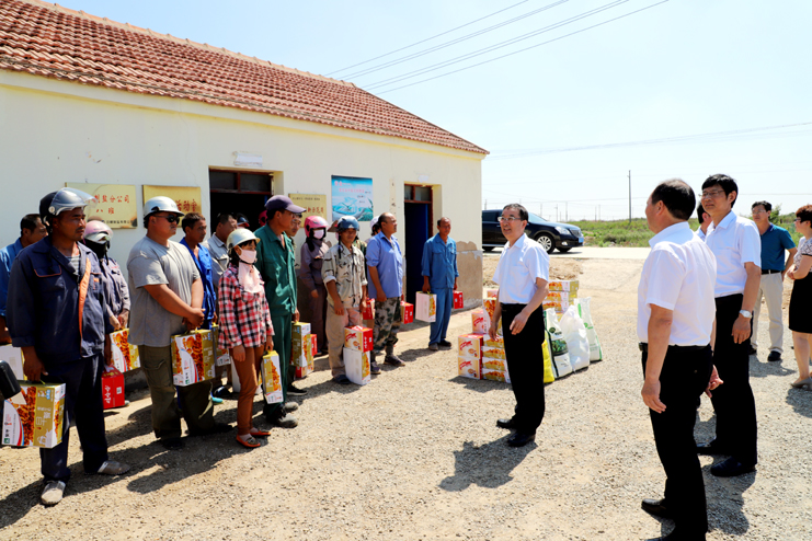 入伏以來,持續(xù)高溫,為確保一線生產單位工作順利開展,保證員工身體健康。7月18日上午,集團公司總經理胡建明、副總經理張其海一行深入日曬制鹽公司走訪慰問一線職工,把綠豆、飲料等慰問品送到他們手中,在炎炎夏季,為一線職工送去集團公司領導的深切關懷與陣陣清涼。
