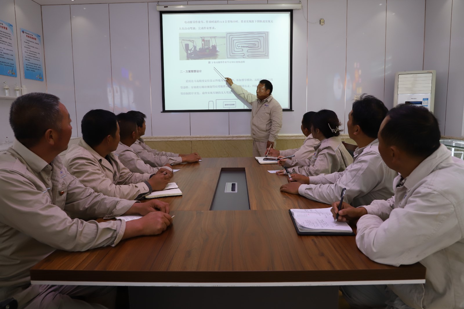 已經(jīng)試驗(yàn)成功的電動(dòng)履帶無(wú)人駕駛扒鹽車,采用北斗高精度定位,推廣后將大幅度提升鹽業(yè)生產(chǎn)智能化、機(jī)械化程度。