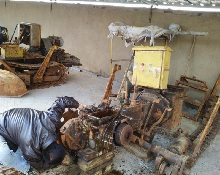 最近,日曬制鹽新河分公司2016年下半年扒鹽工作,接近尾聲,各扒鹽機(jī)組陸續(xù)完成扒鹽任務(wù),機(jī)械先后搬回分公司。該分公司機(jī)電組為了確保來年扒鹽機(jī)械能夠拿得出,打得響,積極對(duì)回來的機(jī)械進(jìn)行維修、保養(yǎng);目前,已完成2套機(jī)械的保養(yǎng)工作。(圖為機(jī)電工人正在維修、保養(yǎng)扒鹽機(jī)械)。