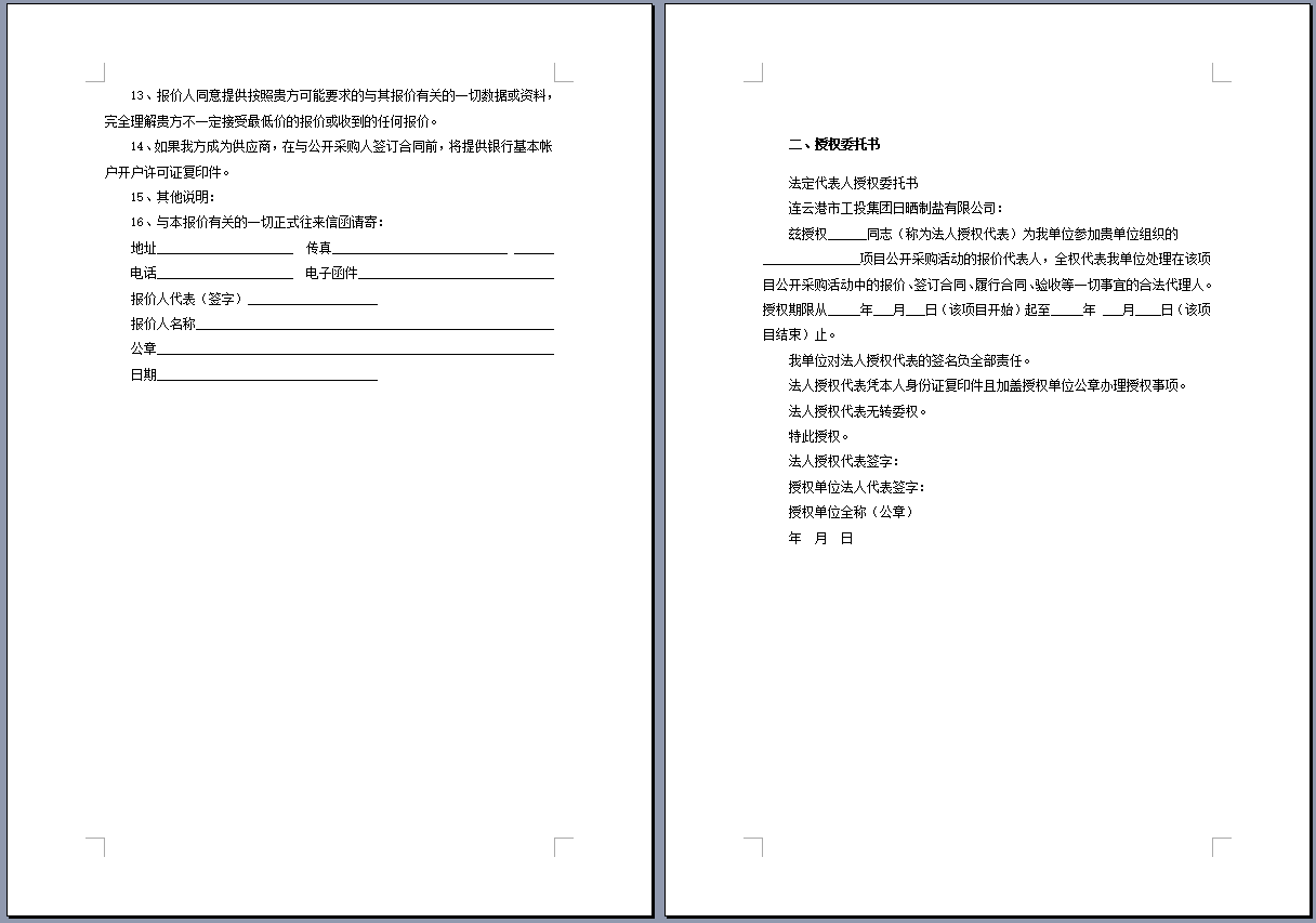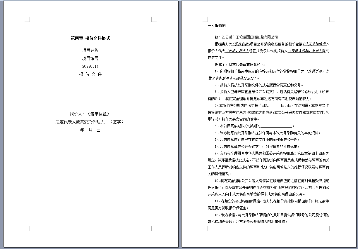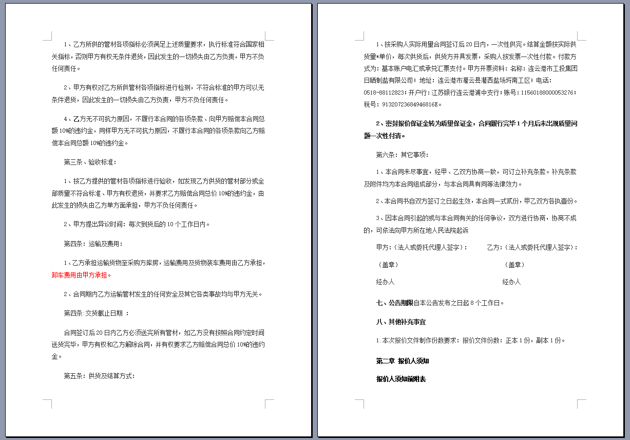 連云港市工投集團(tuán)日曬制鹽有限公司管道采購項(xiàng)目 公開采購文件