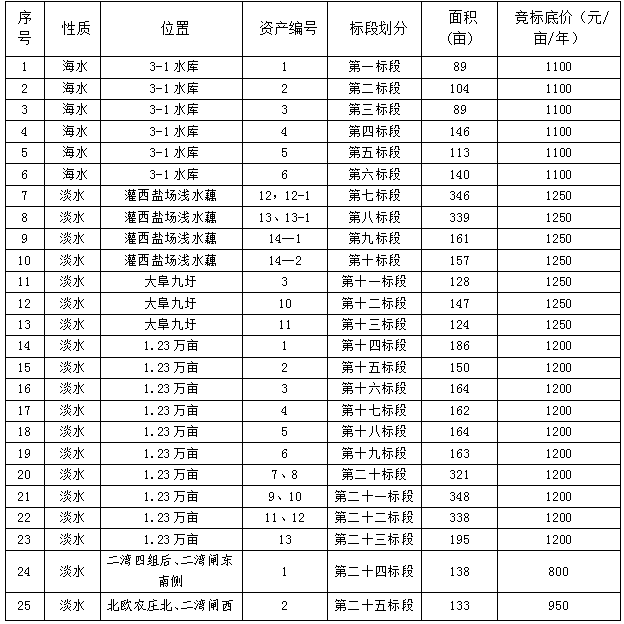 根據(jù)連云港市工業(yè)投資集團有限公司《連云港市工業(yè)投資集團有限公司資產(chǎn)出租管理辦法》(連工投司〔2017〕72號)規(guī)定,經(jīng)灌西投資公司池塘租賃領導小組研究決定,對2020年2月24日公布“灌西投資公司養(yǎng)殖池塘競標公示” 中部分條款進行變更,現(xiàn)公示如下: 一、競標池塘方式變更:原采取暗標方式現(xiàn)變更為采取明標方式。 二、池塘租賃年限:原1.23萬畝淡水區(qū)域池塘租賃期限2年變更為1年。 三、競租池塘各標段競標底價: 灌西投資公司池塘租賃領導小組 2020年 2月 26日