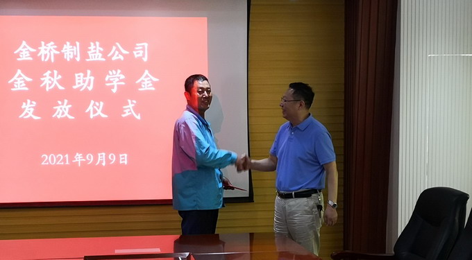 9月9日下午,我公司舉行金秋助學(xué)金發(fā)放儀式,公司黨委書記、董事長、總經(jīng)理朱桂玉為受助學(xué)子家庭發(fā)放助學(xué)金,公司黨委副書記、紀(jì)委書記、工會主席曹開明主持發(fā)放儀式。
