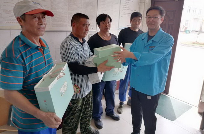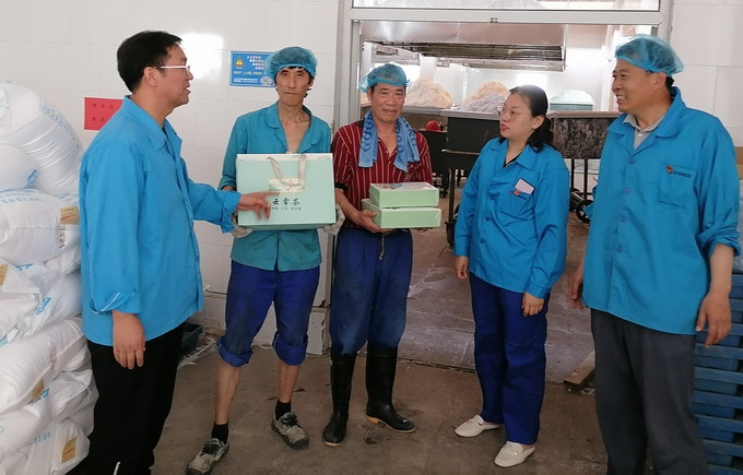 6月8日,我公司工會(huì)開(kāi)展夏季“送清涼”活動(dòng),黨委副書(shū)記、工會(huì)主席曹開(kāi)明一行,為高溫下的一線(xiàn)職工送去了茶葉、菊花茶等防暑降溫用品。