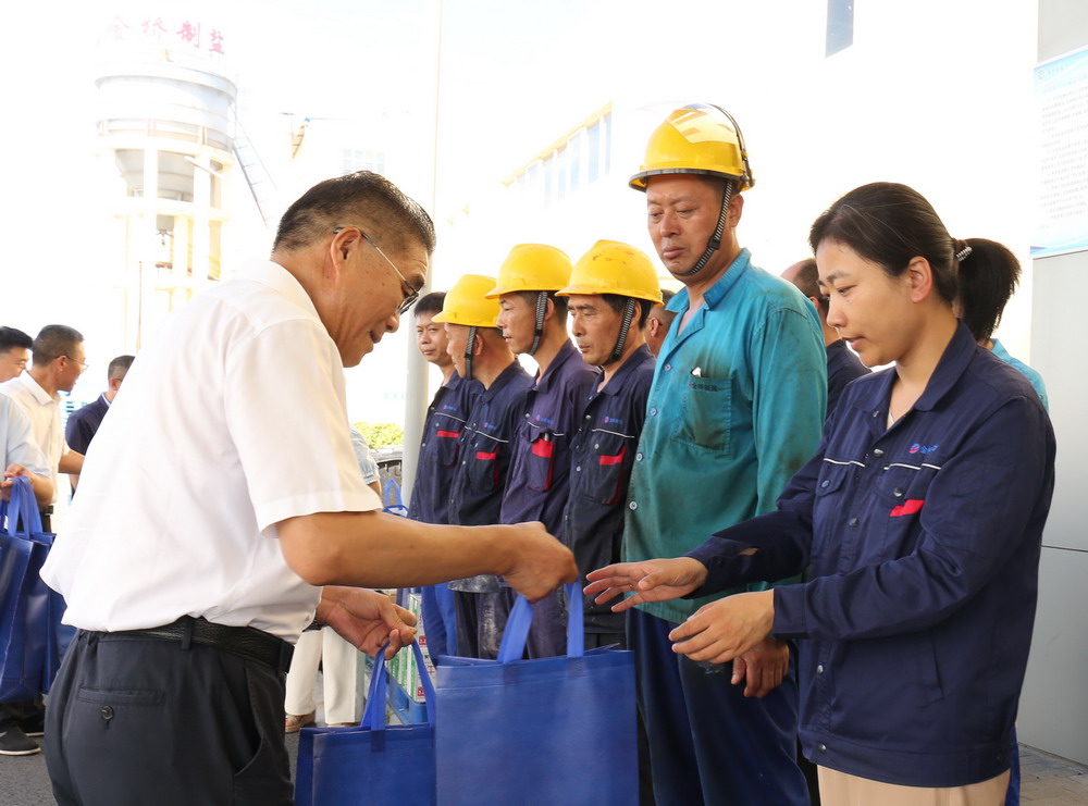 集團(tuán)副總經(jīng)理劉承志來(lái)金橋制鹽公司“送清涼”