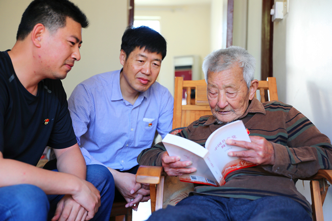 “送學(xué)上門”不掉隊(duì)。公司黨委開展黨史學(xué)習(xí)教育送學(xué)活動(dòng),為離休老干部送出一份特殊的“紅色禮物”:一枚黨徽和一本《中國共產(chǎn)黨簡史》,現(xiàn)場為離休干部佩戴黨徽,誦讀一篇章節(jié)選段,打通了黨史學(xué)習(xí)教育的最后一公里。