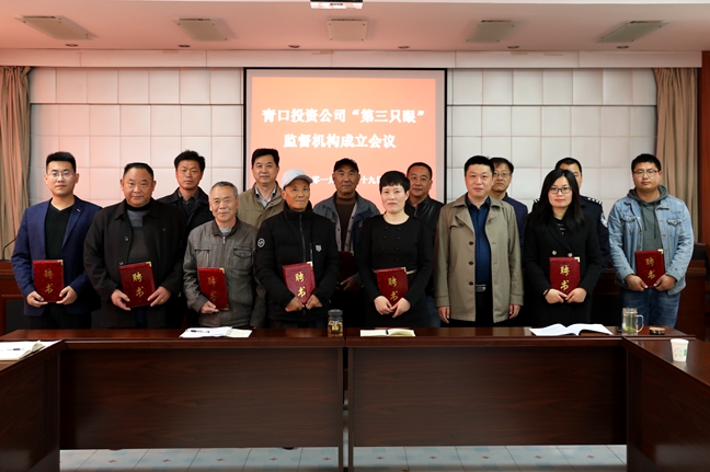 4 月 19 日上午,青口投資公司在四樓會議室召開“第三只眼”監(jiān)督機構成立會議。公司黨委書記、董事長胡傳法,黨委委員、分管領導宋晟曄及受聘的 12 名監(jiān)督員參加了會議。