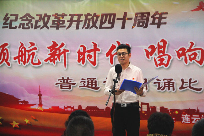 為了紀念改革開放四十周年,引導和激勵廣大職工圍繞 “高質(zhì)發(fā)展、后發(fā)先至”主題主線,為建設(shè)“強富美高”新青口、開啟青口發(fā)展新征程貢獻力量。12月11日下午,青口公司黨委隆重舉行“領(lǐng)航新時代 唱響青口夢”紀念改革開放40周年普通話朗誦比賽。活動邀請到連云港市語委辦副主任、詩朗誦藝術(shù)家協(xié)會副主席朱衛(wèi)文,國家級普通話測試員、市朗誦藝術(shù)家協(xié)會副秘書長李蕾、主任播音員、市朗誦藝術(shù)家協(xié)會副主席朱平擔任評委。公司領(lǐng)導班子 及 全體管理人員參加活動