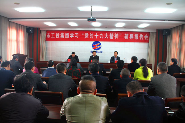 為了深入學(xué)習(xí)黨的十九大精神,準(zhǔn)確把握精神實(shí)質(zhì)。 11月16日上午,市工投集團(tuán)學(xué)習(xí)“黨的十九大精神”輔導(dǎo)報(bào)告會(huì)在我公司召開(kāi)。報(bào)告會(huì)特邀市委黨??蒲刑幪庨L(zhǎng)、副教授王洋同志從新的歷史方位、新變化、新的戰(zhàn)略安排、新的指導(dǎo)思想、新作為五個(gè)方面作了題為《站在新的歷史方位講好中國(guó)故事》報(bào)告。公司領(lǐng)導(dǎo)班子及各單位部門(mén)黨員代表共計(jì)80余人參加了此次學(xué)習(xí)。 (青 宣)