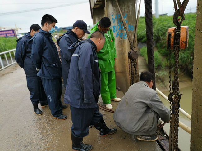 近日,三洋分場內附河大新排淡河節(jié)制閘西閘突發(fā)故障,電動手動起閉系統(tǒng)全部失靈。正值汛期漲潮來臨,為了防止海水倒灌及保障大新農場正常排淡,三洋全體班子頂風冒雨5個小時,采取土方法,用“鐵葫蘆”把閘門關閉,并及時上報公司領導予以維修。(丁海波)