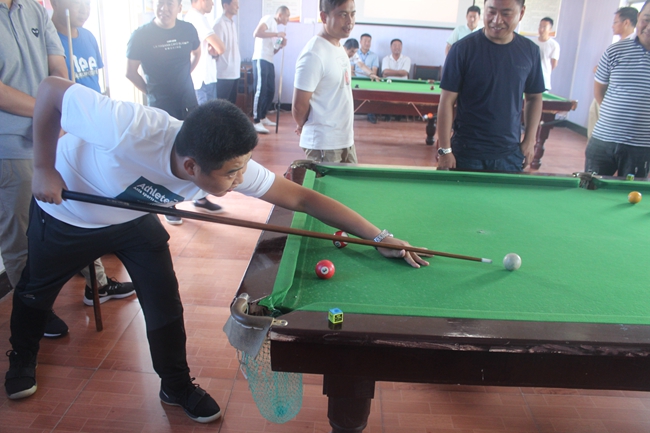 ? ? 臺球初賽采用三局兩勝淘汰賽制,抽簽決定比賽對手和上場順序,第一輪勝出者進(jìn)入下一場比賽,前四名選手進(jìn)入決賽。本次共有32名選手報名,參賽隊員雖然都是業(yè)余愛好者,但每名參賽選手態(tài)度非常認(rèn)真,臺球桌前,他們不停地走動尋找最佳擊球點,架桿、出桿、撞球、落袋,過程緊張而激烈,博得觀眾陣陣掌聲。經(jīng)過多輪角逐,服務(wù)中心張建軍獲本次比賽的冠軍,大新農(nóng)場徐振濤、候玉剛及服務(wù)中心張根林獲得二等獎。