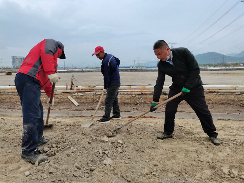 5月8日至10日,公司全體管理人員下至昌圩班組作業(yè)現(xiàn)場,與一線工人共同“作戰(zhàn)”——清理鹽池里沉淀的硫酸鈣固化物。硫酸鈣固化物俗稱鹽繭,形成的主要原因是鹵水中的硫酸鈣溶解度低,在特定的環(huán)境下大量形成,沉淀在鹽池板表層,若不清理,將嚴(yán)重影響鹽質(zhì)顏色。在清理過程中,黨員干部帶頭干、往前沖,一锨一锨地將鹽繭鏟起,堆積并裝車卸貨。公司秉承降本增效工作理念,將清理出的鹽繭廢物鋪墊在鹽灘壟道上,提高了路面硬度方便職工日常作業(yè)。