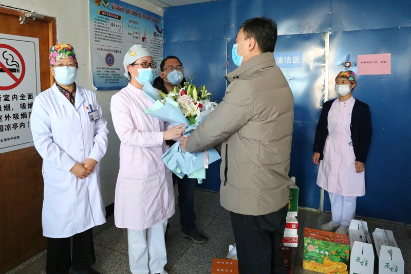 為慰問公司職工家庭中的“戰(zhàn)疫天使”,并表達(dá)對戰(zhàn)“疫”一線醫(yī)護(hù)工作者們的敬意,2月27日上午,黨委副書記、工會主席吳衛(wèi)平代表投資公司赴市中醫(yī)院慰問一線醫(yī)護(hù)工作者。市中醫(yī)院黨委書記李建軍、院長李秀連、黨委副書記楊爽等親自接待了公司慰問人員一行。