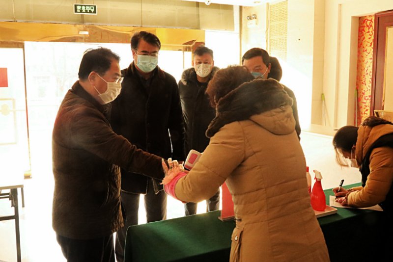 在金臺大酒店體溫檢測點(diǎn),戴鴻鳴一行主動配合工作人員進(jìn)行體溫檢測登記,現(xiàn)場查看了公司防疫設(shè)施設(shè)置、辦公場所消毒、值守人員配備等方面情況。在聽取了防疫工作情況和復(fù)工措施安排的匯報(bào)后,戴鴻鳴對公司積極貫徹集團(tuán)防疫要求、嚴(yán)格落實(shí)疫情防控責(zé)任給予了充分肯定,并要求加強(qiáng)防控力度,做到三個到位。一要繼續(xù)把防控責(zé)任落實(shí)到位,將防疫工作作為當(dāng)前首要任務(wù),守土擔(dān)責(zé)、守土盡責(zé);二要繼續(xù)把防控措施實(shí)施到位,保障職工工作環(huán)境、生活環(huán)境安全有序;三要繼續(xù)把復(fù)工措施細(xì)化安排到位,統(tǒng)籌做好宣傳引導(dǎo)、人員調(diào)配、業(yè)務(wù)開展等各方面工作,確保兩手抓兩不誤。