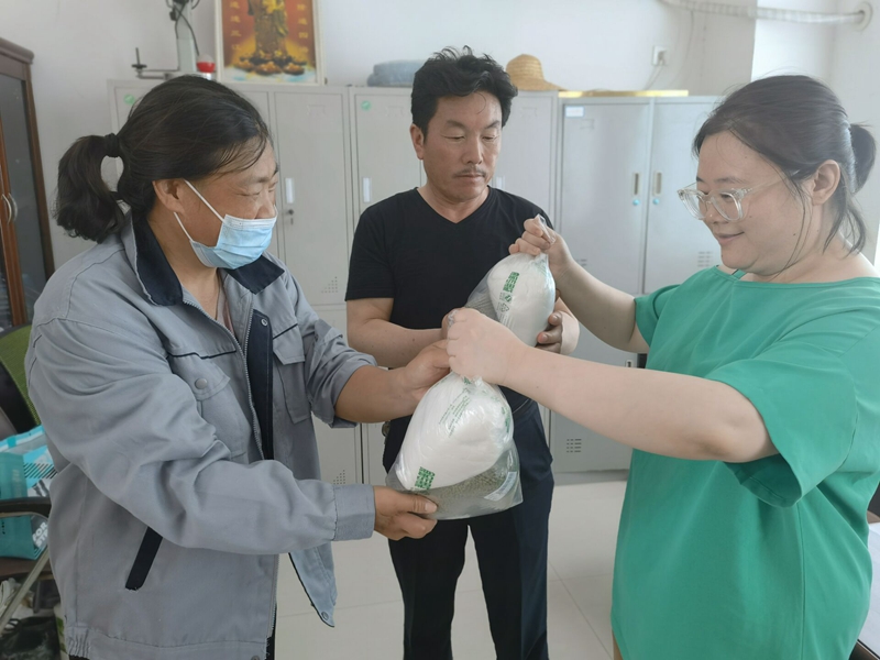 公司班子成員還自費(fèi)為班組成員、保安、保潔發(fā)放綠豆、白糖等降暑物資。