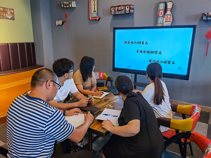 在傳達(dá)投資公司上半年經(jīng)營活動分析會會議精神,大家圍繞會議提出的“租賃135萬,補貼100萬,培訓(xùn)88萬”任務(wù)目標(biāo),交流了下一步公司思路和想法,明確了職責(zé)和任務(wù)。圍繞王董事長提出“三高”“1234”“紅燈紅旗”等任務(wù)要求,大家充分領(lǐng)會了講話的深刻含義,也凝聚了思想共識,在剩下4個月的時間內(nèi)發(fā)揮自我革新,艱苦的奮斗的斗爭精神,堅決完成投資公司交辦的任務(wù)目標(biāo)。