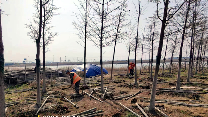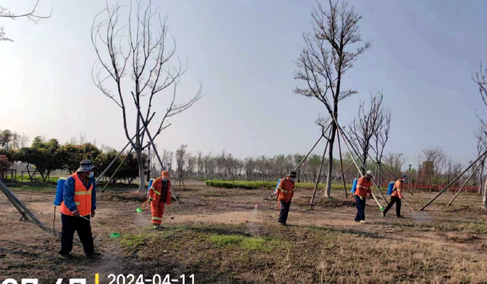 積極澆灌返青水。當(dāng)前,地溫回升快,苗木易萌芽,該班組采用“人工+機械”相結(jié)合的方式,全面啟動返青水集中澆灌工作,重點對園區(qū)喬木、果木、草坪等進行全面灌溉,促進苗木、草坪返青發(fā)芽。按照分種類、合理澆灌的原則,采取集中澆灌的方式最大限度減緩晝夜溫差對綠化植物的影響,入春后共澆水100余次,對落羽杉圓動力灌根2000棵,對大樹澆水1500棵,綠化澆水約30000平方米。