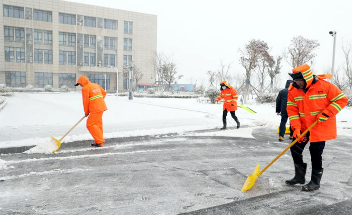 2月1日起,持續(xù)降雪,導(dǎo)致環(huán)衛(wèi)運(yùn)營(yíng)管理中心道路上覆蓋著厚厚的積雪和凍冰,嚴(yán)重影響應(yīng)急救援車(chē)輛的出行,悅升機(jī)關(guān)突擊隊(duì)“以雪為令”,迅速集結(jié),對(duì)環(huán)衛(wèi)指揮中心院內(nèi)和徐新路開(kāi)展集中清理積雪工作,確保城市道路交通正常運(yùn)轉(zhuǎn)。