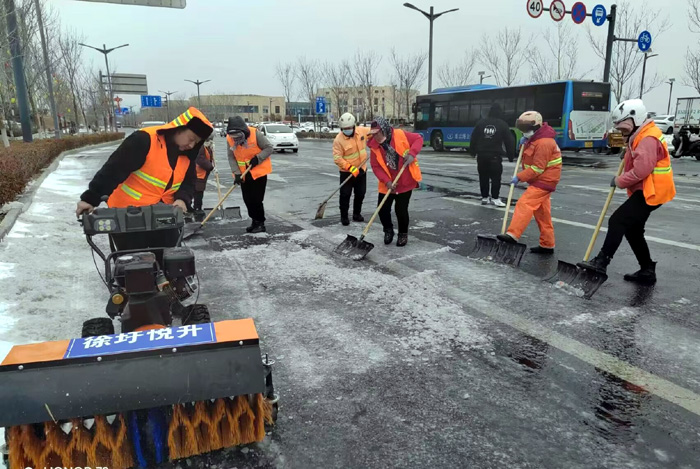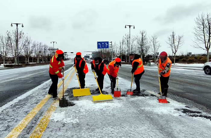 ? ? ? ?連日來,受強冷空氣影響,鵝毛雪花持續(xù)飄落港城大地。為保障行人車輛往來徐圩新城安全通行。保潔分公司全員上下協(xié)力同心、“遇雪”奮戰(zhàn),確保責(zé)任區(qū)域道路車輛行人安全出行。