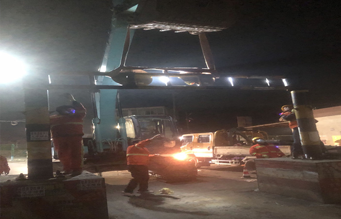 本次施工作業(yè)前,該公司提前報(bào)備交警部門,科學(xué)設(shè)計(jì)施工方案,合理安排作業(yè)時(shí)間,確保安全生產(chǎn)工作。施工人員到達(dá)現(xiàn)場后,首先維持現(xiàn)場秩序,在東山閘兩端擺放安全警示標(biāo)志,專人指揮車輛繞行。在挖機(jī)的配合下,工作人員有序開展擴(kuò)寬施工作業(yè),王緒明負(fù)責(zé)吊掛安全吊帶、指揮限寬墩擴(kuò)寬,王守濱負(fù)責(zé)現(xiàn)場限高架焊接,現(xiàn)場管理員單華祥負(fù)責(zé)指揮擴(kuò)寬作業(yè),施工現(xiàn)場井序有然,大家各司其職,任勞任怨,發(fā)揚(yáng)鹽場人不怕吃苦精神,經(jīng)過近3小時(shí)的緊張作業(yè),高質(zhì)高效完成限高架限寬墩擴(kuò)寬施工作業(yè),道路恢復(fù)安全暢通。(李濤)