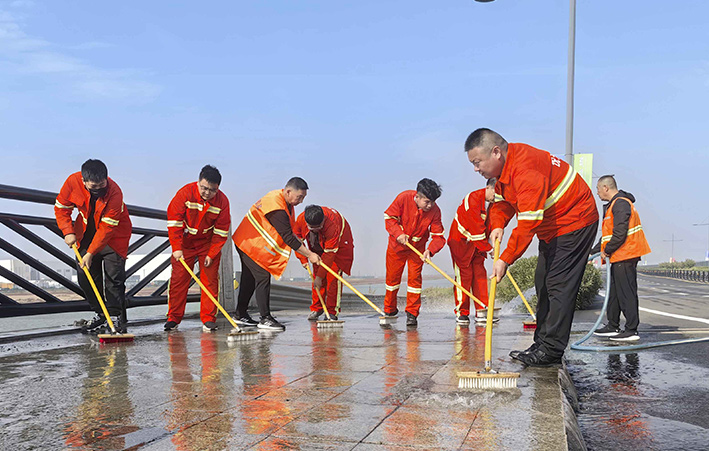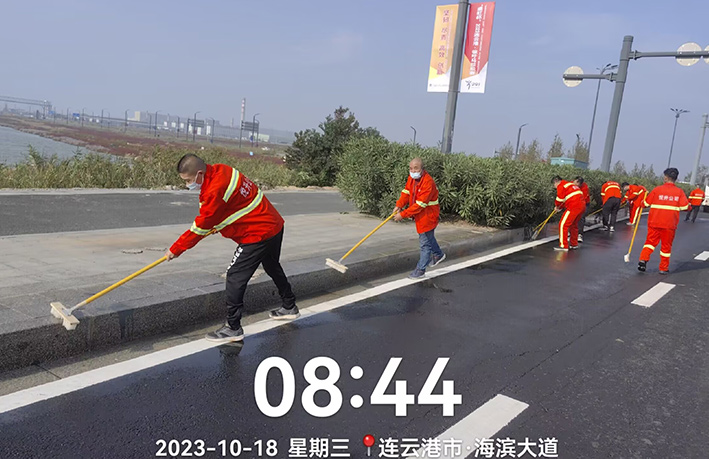 10月18日上午,悅升公司機關(guān)管理人員深入一線對海濱大道南卡口至疏港大道路段及橋梁路緣石進行強化清洗,用實干打好賽道保障“戰(zhàn)役”。工作現(xiàn)場,一臺高壓沖洗車先行對賽道路緣石和橋梁輔道進行高壓沖洗,隨后,工作人員一字排開,用毛刷不斷擦洗地面頑固臟污,大家斗志昂揚、步步推進,做到?jīng)_洗無漏洗、無死角,最后再用灑水車清洗一遍。經(jīng)過近三小時清洗,高標準完成路源石和橋梁輔道保潔清洗工作,有效提高了賽道潔凈度。截至目前,已完成該路段2000多米路緣石清洗工作。